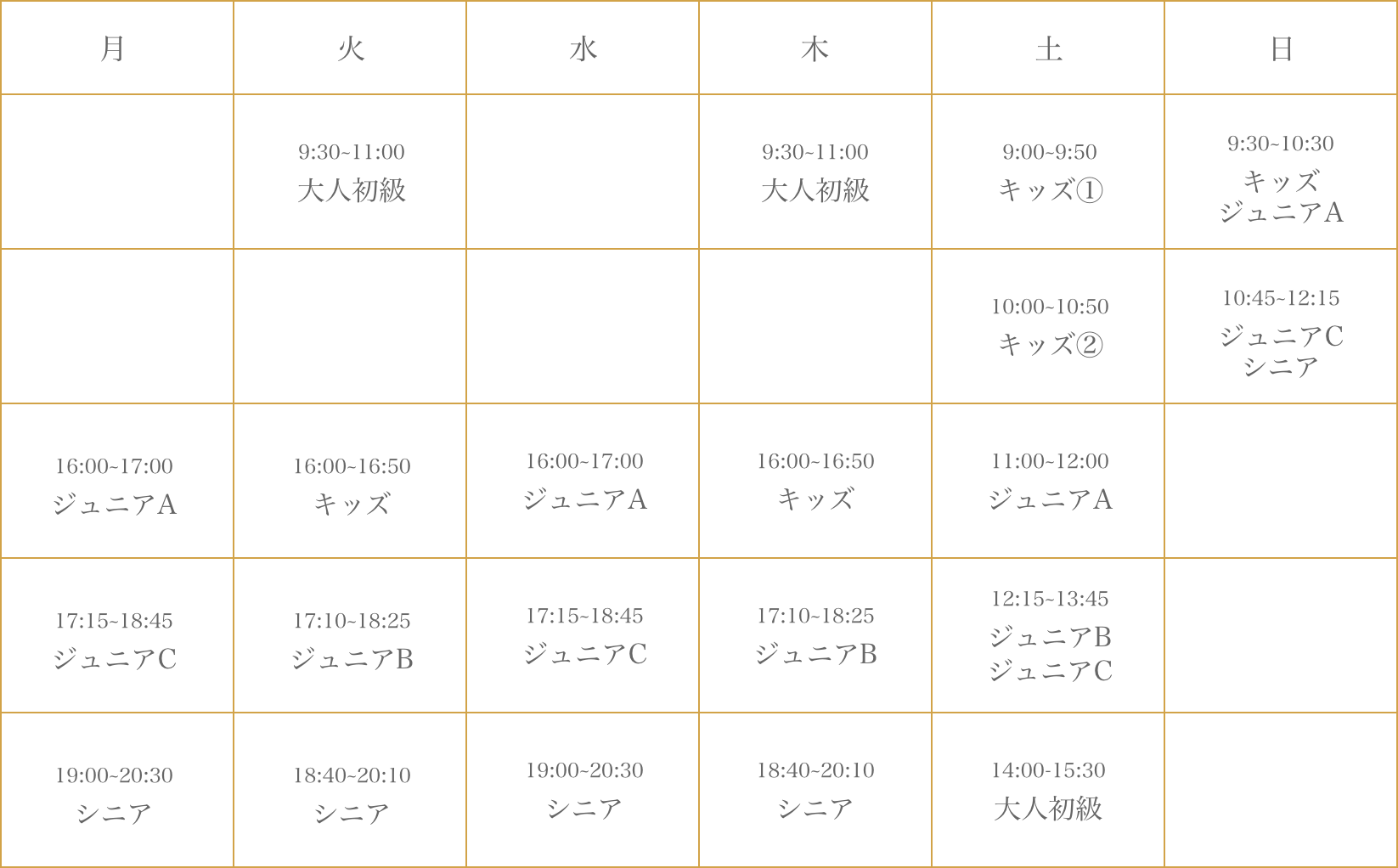 | ジュニアC、シニアクラス | 週1回 | ¥9,000 | |